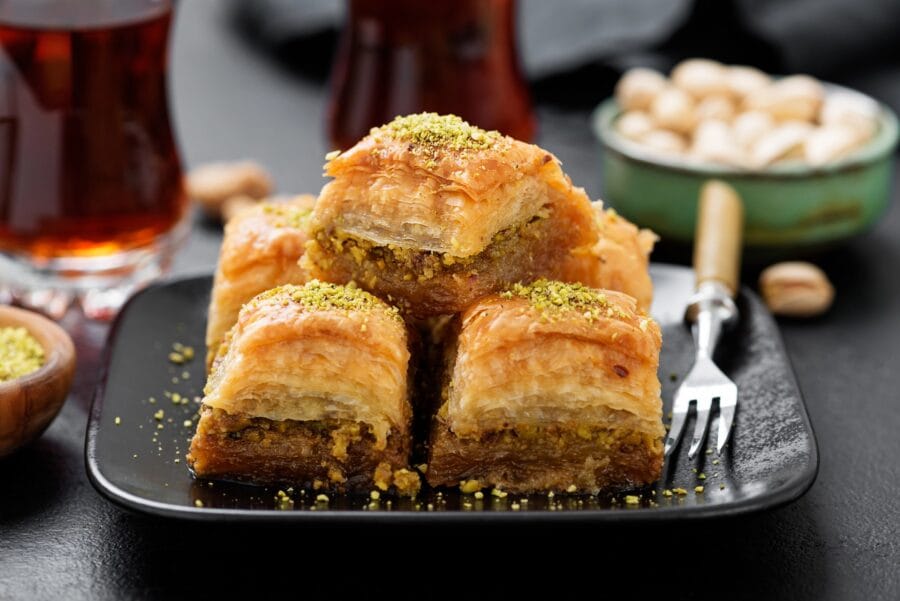 Et au Moyen-Orient, on déguste volontiers des gâteaux parfumés à la fleur d’oranger ou à la pistache, tels que les fameux baklava, empreints de douceur et de tradition.