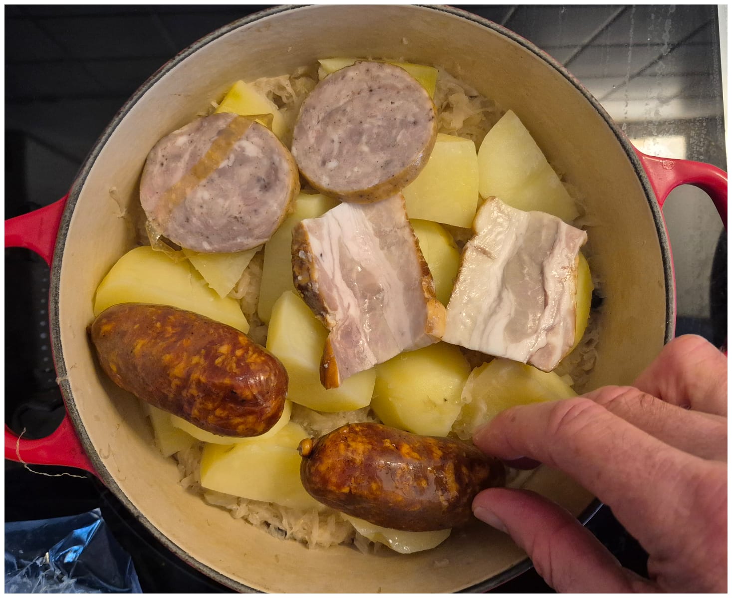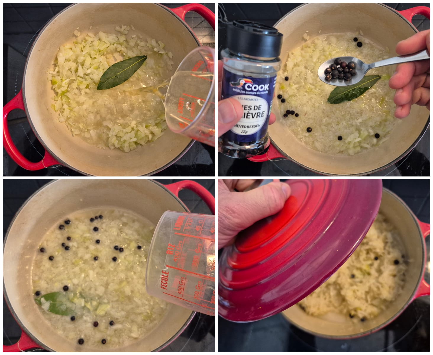 Au niveau des ingrédients un peu spécifiques qu’il vous faudra prévoir, il y a les baies de genièvre. C’est une sorte de poivre mais plus doux et dont le parfum donne tout son caractère à cet irrésistible plat traditionnel du grand est 😋. L’autre ingrédient incontournable est le vin blanc, et de préférence du Riesling.