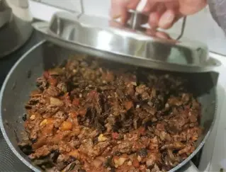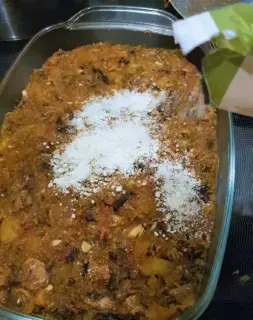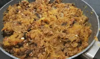 Je la cuisine avec une sauce à base de tomate et viande hâchée, puis gratinée avec du parmesan. Les spaghetti de courge font office de légume plutôt que de féculent, et ce plat est donc beaucoup plus digeste que la Bolognaise traditionnelle !