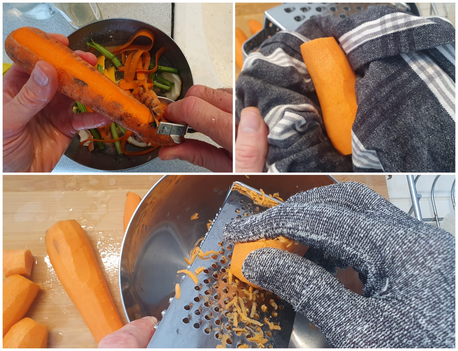 Comme vous le verrez, ces galettes ne présentent aucune difficulté dans leur préparation. Les ingrédients sont tous faciles à trouver, dans une épicerie bio dans un grand supemarché. Il vous faudra seulement de quoi râper les carottes et puis le reste des ustensiles que j’utilise est facultatif.