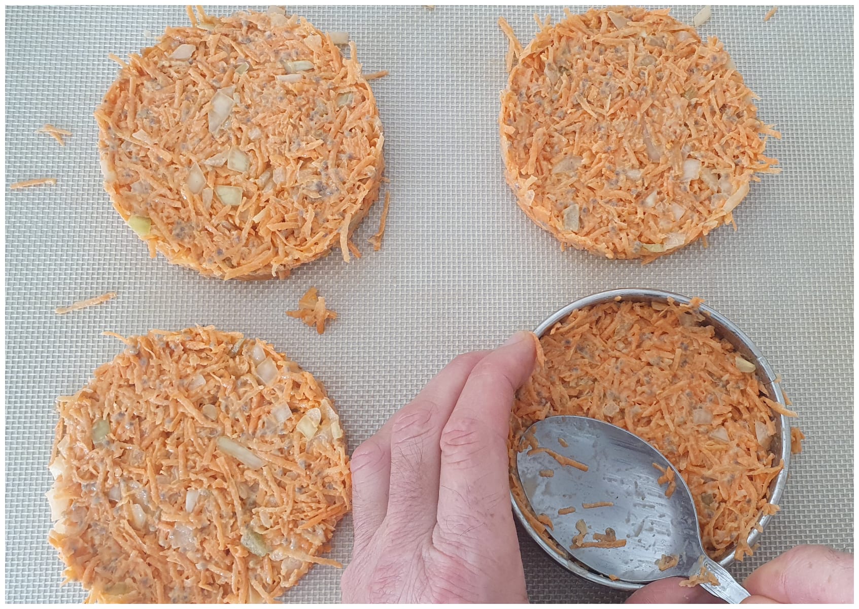 Ces galettes évoquent les rösti, ces fameuses croquettes de pommes de terre autrichiennes. Dans ces dernières ce sont les oeufs qui assurent le liant, et permettent aux croquettes de ne pas se déliter à la cuisson. Mais vous ne trouverez point d’oeuf dans ces croquettes à la carotte. Le secret ? Ce sont les graines de chia, qui mélangées à du lait végétal vont permettre à ces galettes végétales de garder leur consistance à la cuisson.