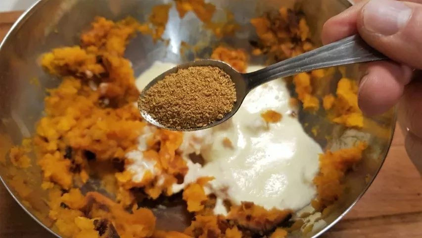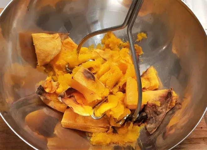 - 6Dans un saladier, écrasez la chair du potimarron en purée.