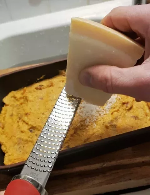 - 8Etalez la préparation dans un plat à gratin, recouvrez avec le parmesan rapé, et faites gratiner pendant 10 à 15 min au four à 220°C.
