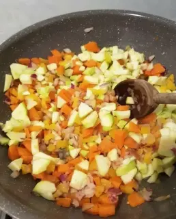 Ce n’est donc pas un plat complètement traditionnel, plutôt un assemblage de cuisines, mais il n’empêche, c’est rudement bon… Surtout que j’ai pris le parti d’éviter la facilité et cuisiner un plat complet à base de produits frais. Donc pas de bouillon cube dans cette recette, mais plein de bons légumes qui vont mijoter avec les lentilles et les enrichir de leurs couleurs, textures et vitamines.