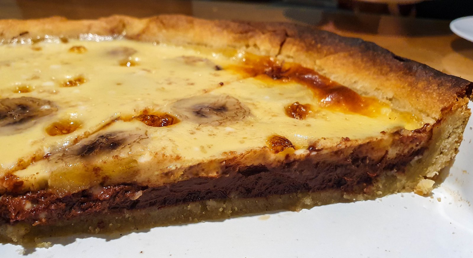 Les gourmand(e)s vont être aux anges avec cette tarte choco banane sur base de pâte sablée, et recouverte d’une ganache de chocolat noir. On termine ensuite avec des rondelles de banane et un nappage au lait, œufs et cassonade. C’est cet appareil aux œufs qui va dorer et caraméliser au four, tout en protégeant les rondelles de banane.