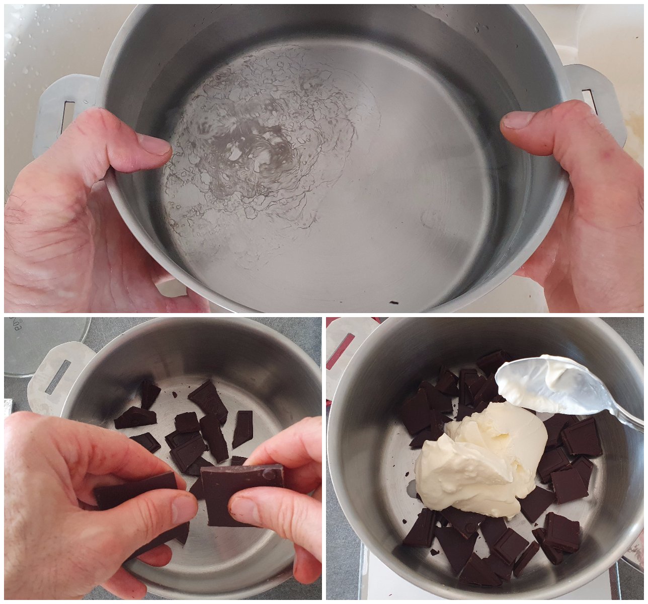 - Mais vous pouvez aussi opter sur la version « banane++« , qui comporte d’abord une couche de purée de banane, puis une couche mince de ganache au chocolat, et enfin les rondelles de banane.