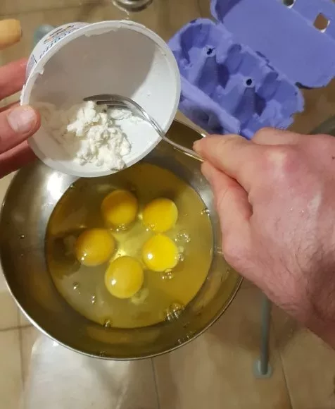 Dans ma recette j’aime ajouter des produits laitiers au moment de battre les oeufs : ricotta, fromage frais type Saint-Moret, ou encore crème fraîche épaisse.