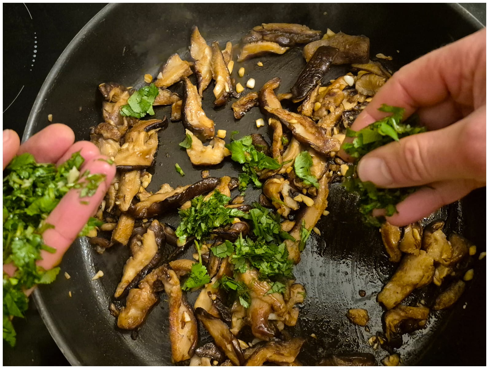 – À la poêle ou au wok (cette recette) : feu moyen à moyen-fort, 10–15 minutes, jusqu’à ce qu’ils soient bien tendres et légèrement dorés,