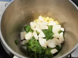 Vous venez d’acheter ou de récolter des radis ? Surtout, n’en jetez pas les fanes ! Elles vous serviront de base pour cuisiner cette délicieuse soupe, une fois légèrement revenues et accompagnées de navet et de pomme de terre.