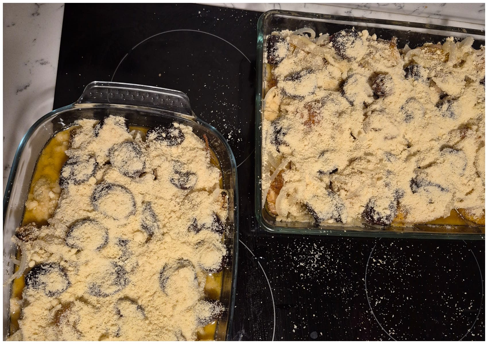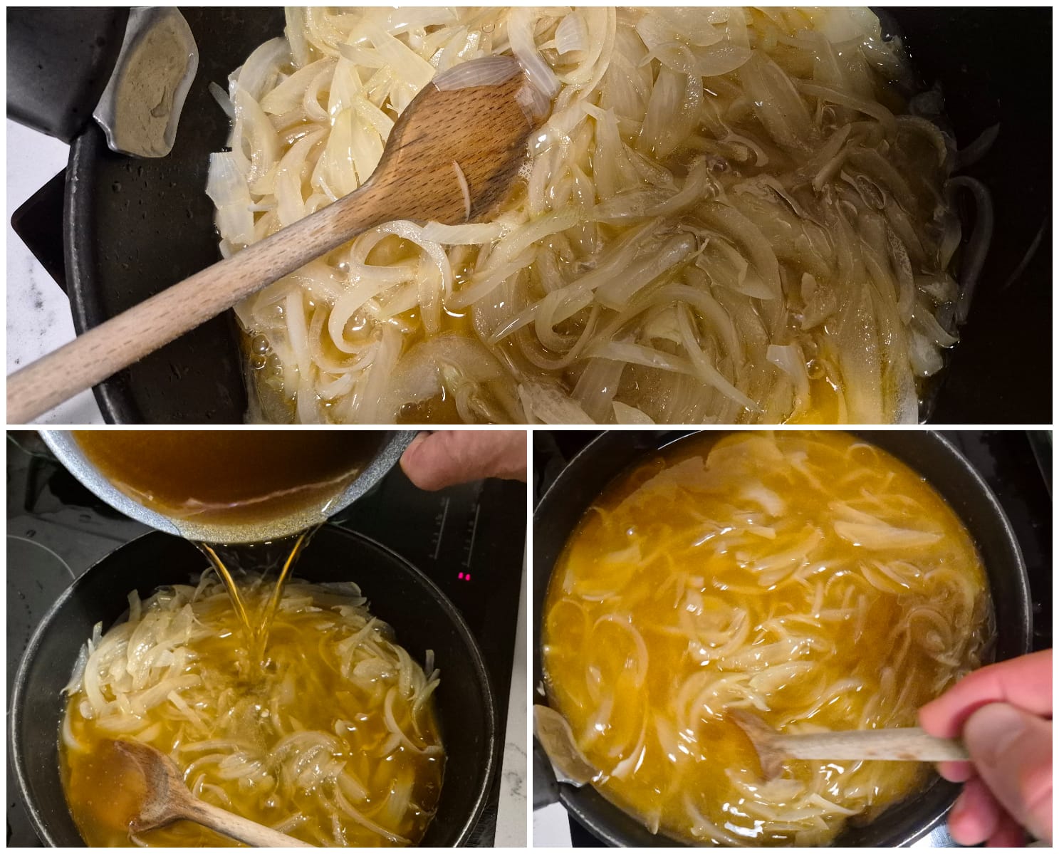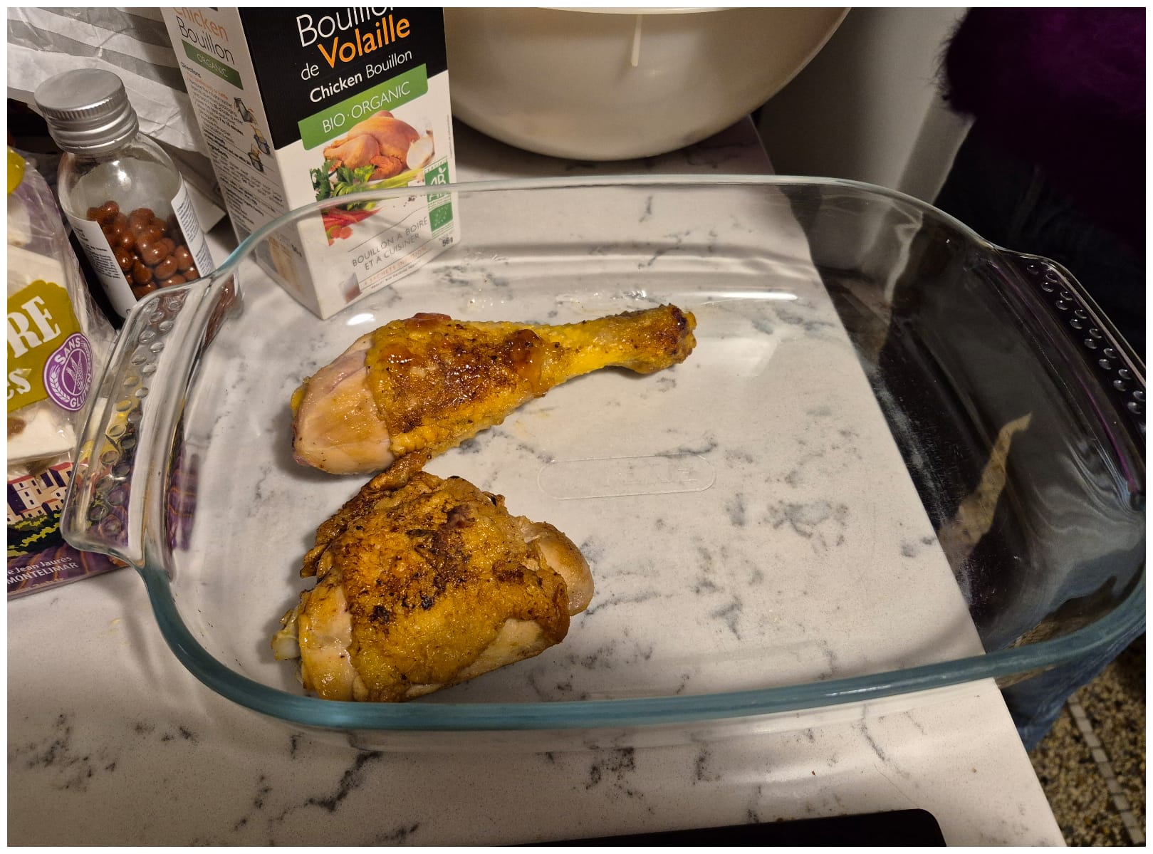Je prépare cette recette en deux temps. Je fais d’abord revenir les morceaux de poulet, et infuser les pruneaux dans du thé. Je mets ensuite le tout à cuire au four, avec du bouillon de volaille, des oignons et de la poudre d’amandes.