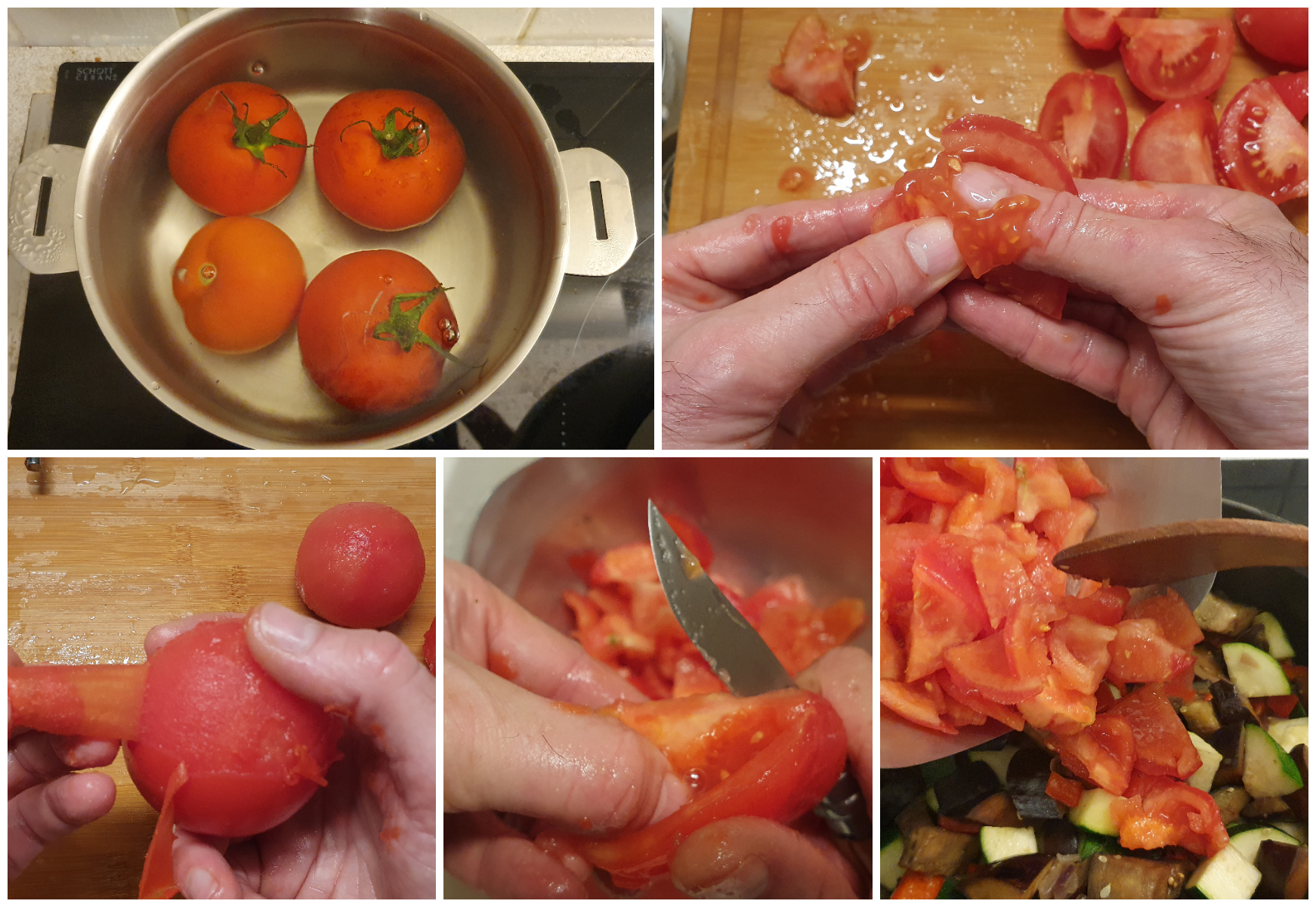 Ceci est vrai en particulier pour les aubergines qui ont besoin de rendre leur eau. D’autre part, le fait d’épépiner les tomates permet d’éviter qu’elles rendent trop d’eau (et de graines) lors de leur cuisson.