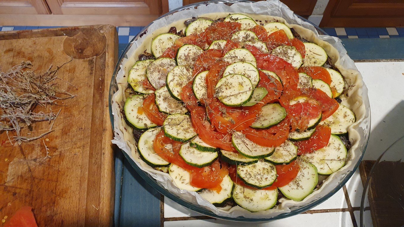 C’est la deuxième fois que je cuisine cette recette de tarte Bayadère aux légumes d’été, et tout le monde s’est à nouveau régalé. Vu ce succès, je me décide donc à vous la partager !