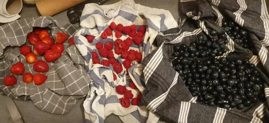 Dans ma recette j’ai choisi d’utiliser seulement trois fruits, les fraises, les myrtilles et la framboise, mais vous pouvez les adapter en fonction de vos goûts et des fruits rouges que vous avez sous la main !