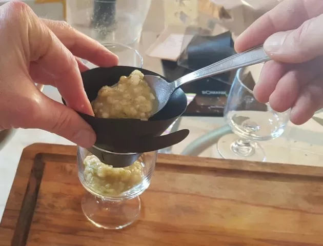 Comme vous pourrez le voir cette verrine banane-citron vert, chocolat et noisettes, requiert pas mal de préparation, et un peu de matériel de pâtisserie, mais le résultat est à la hauteur, et mes convives en ont gardé un souvenir ému…